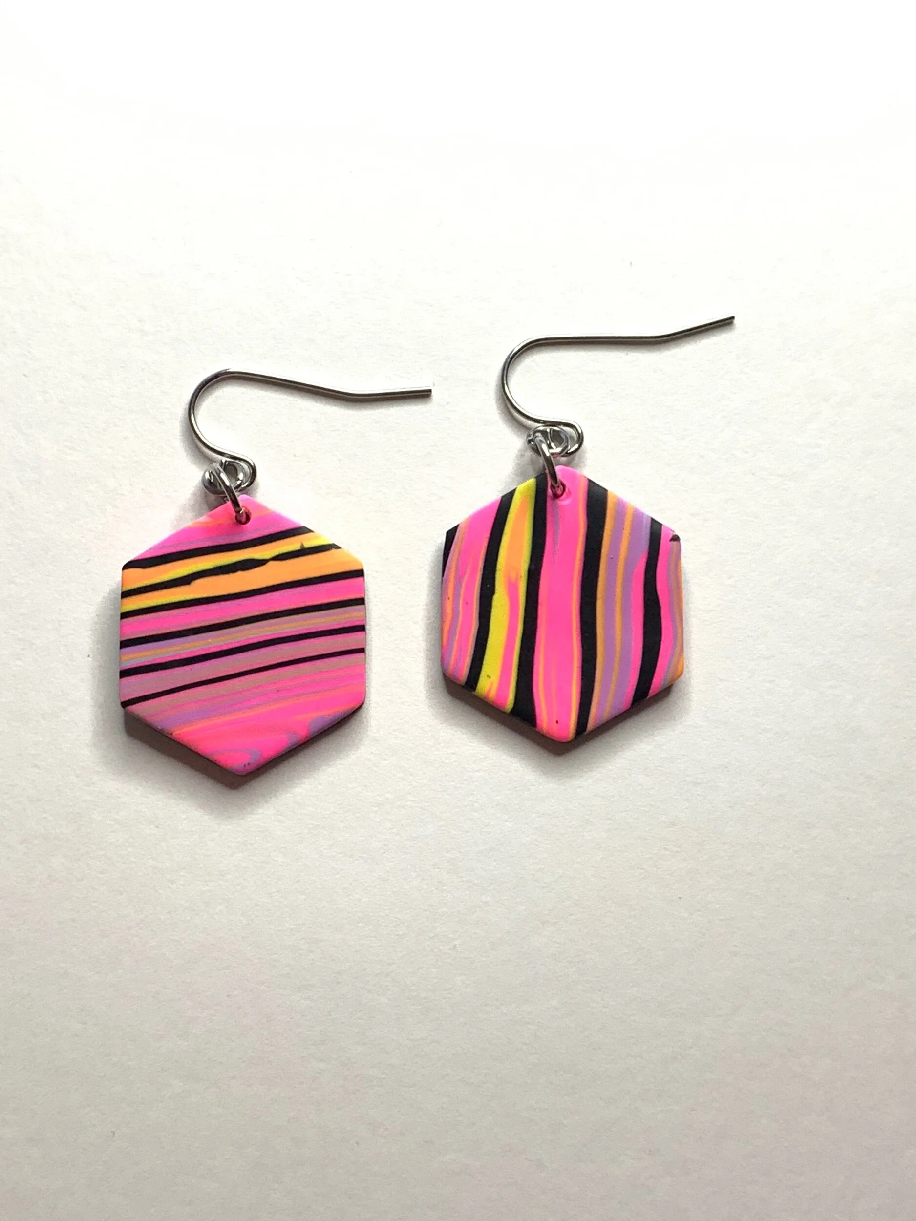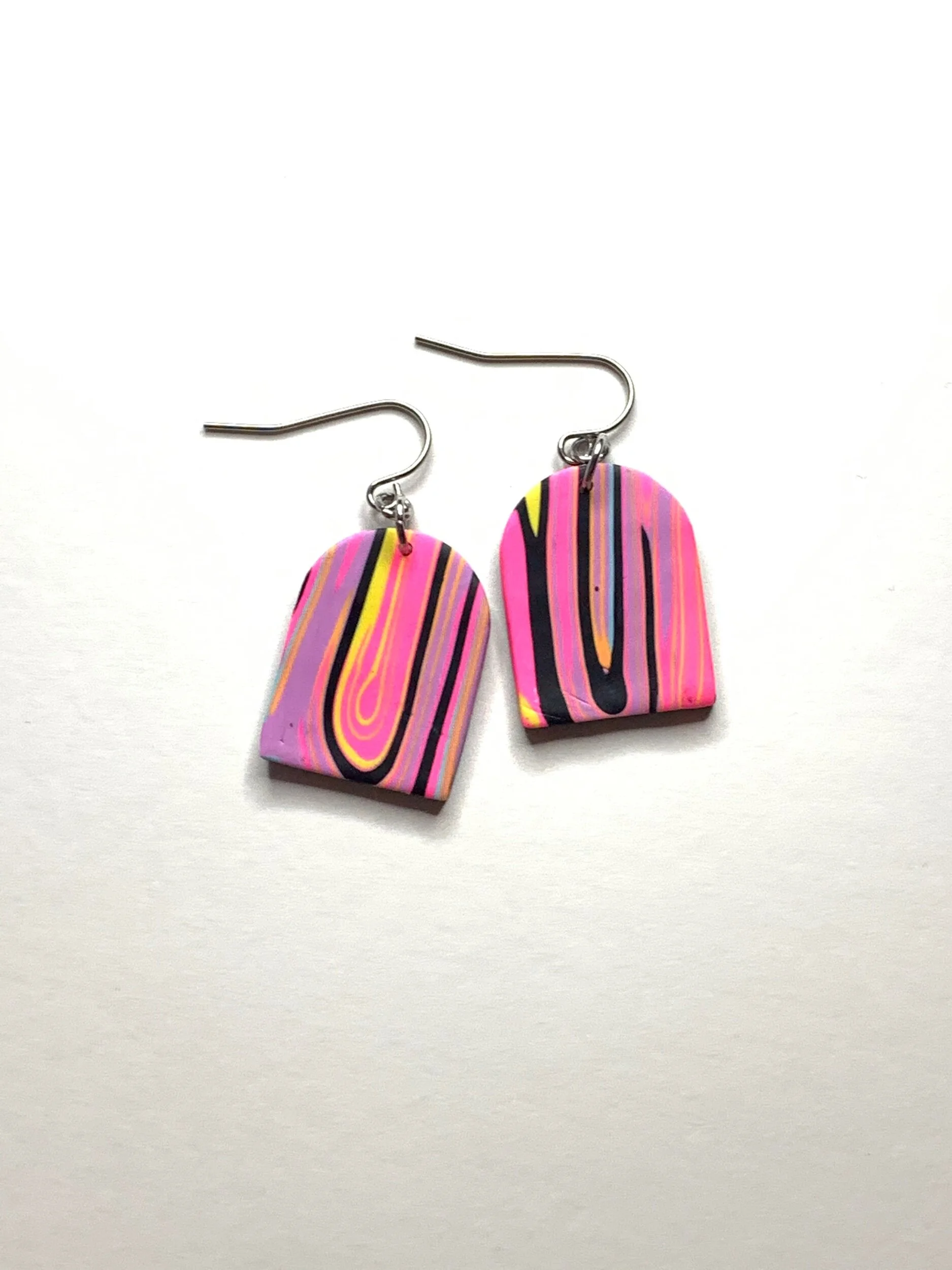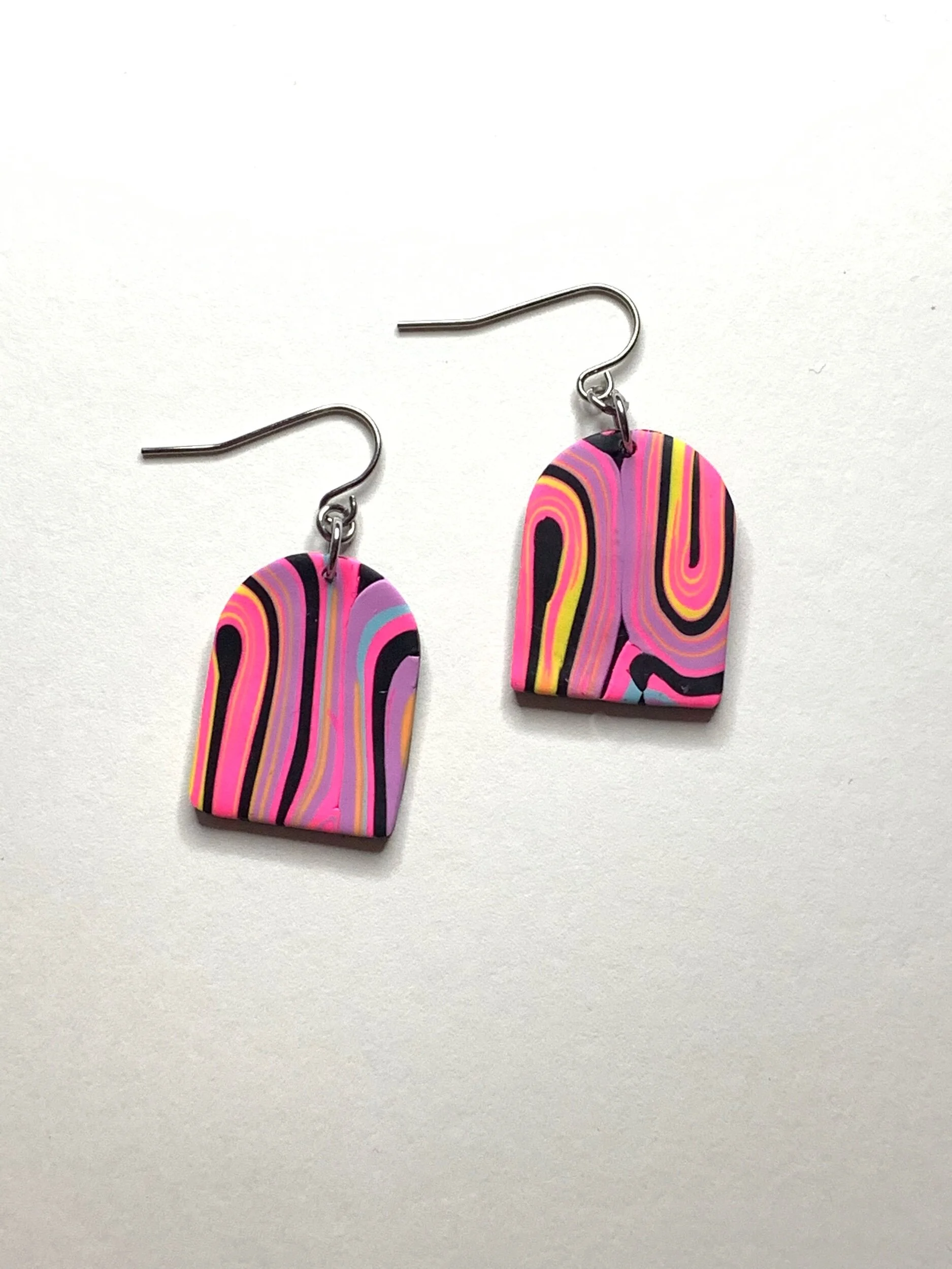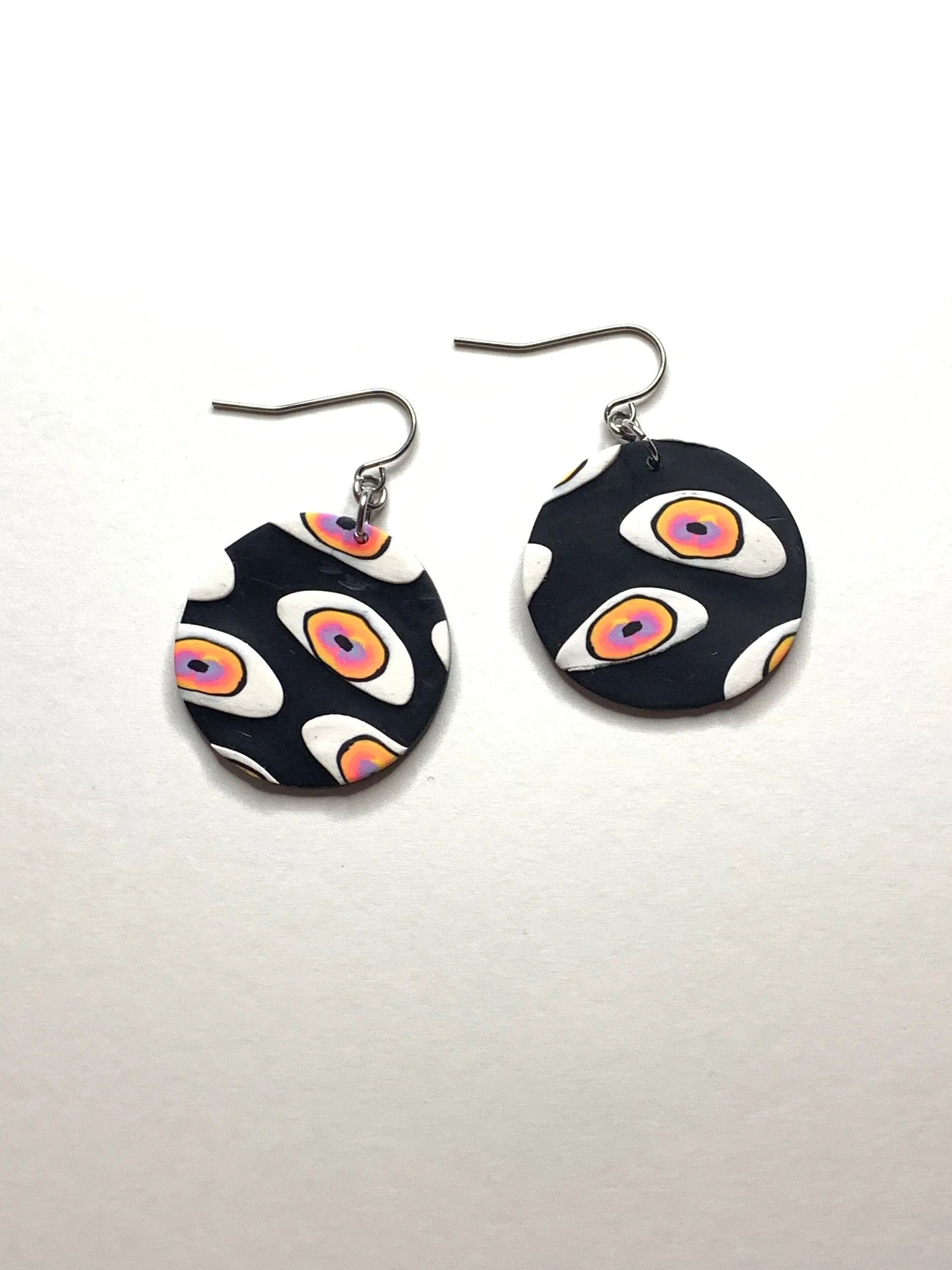 Hand made with polymer clay and stainless steel posts.