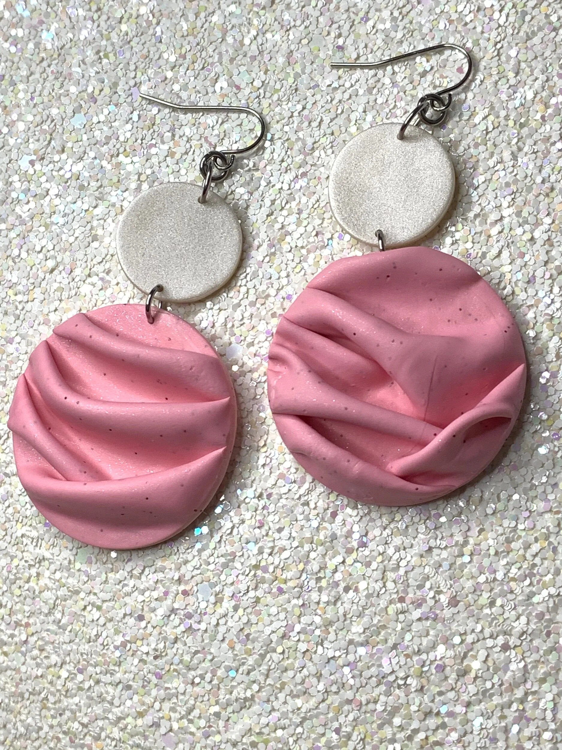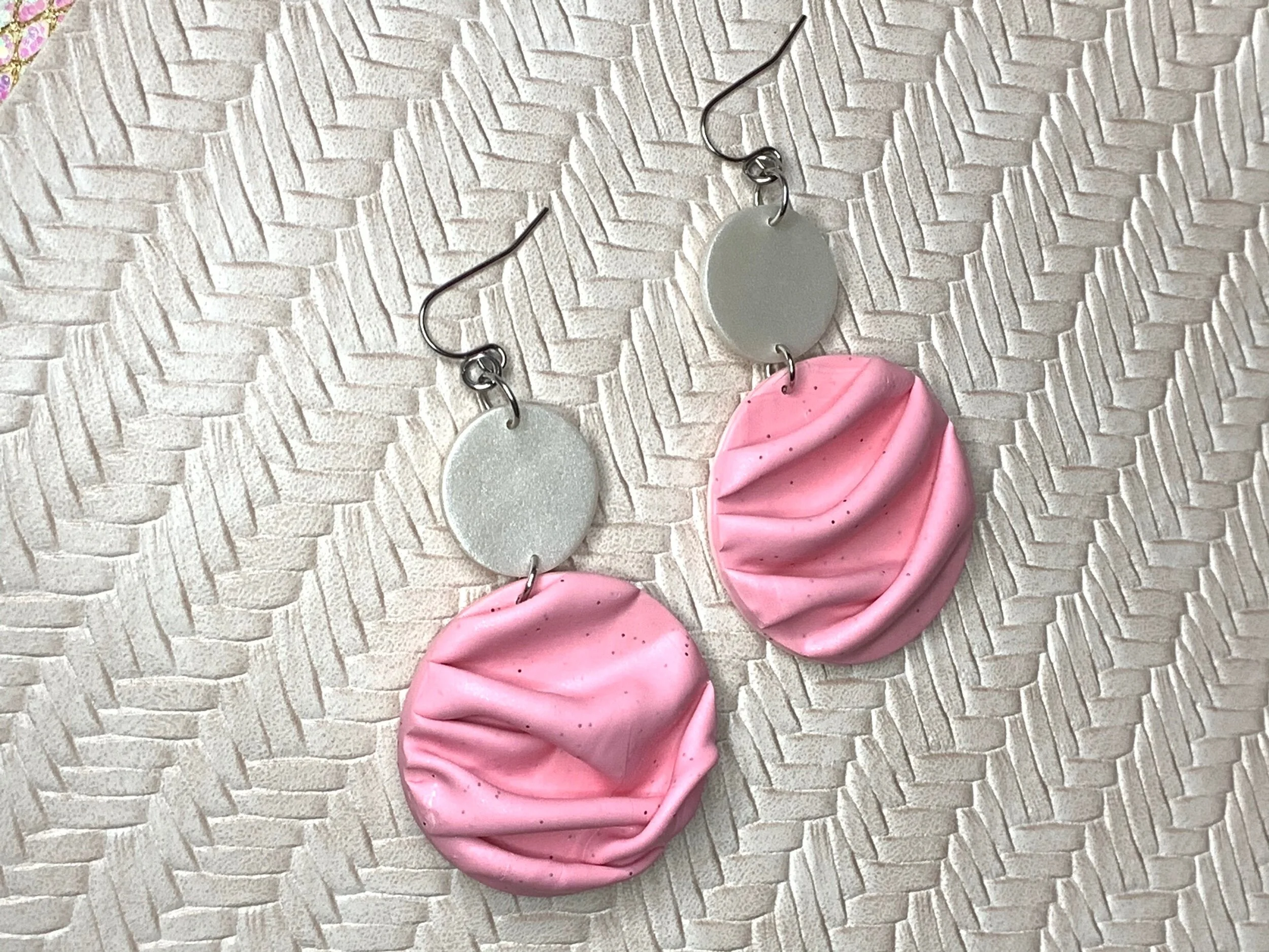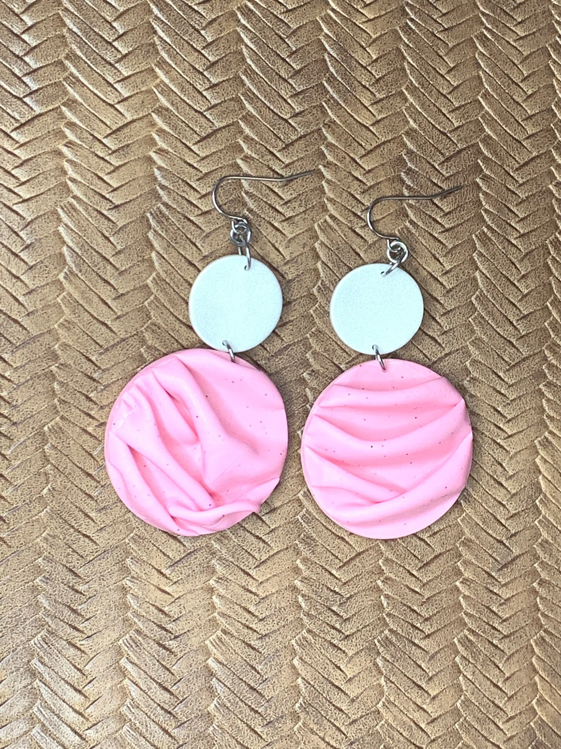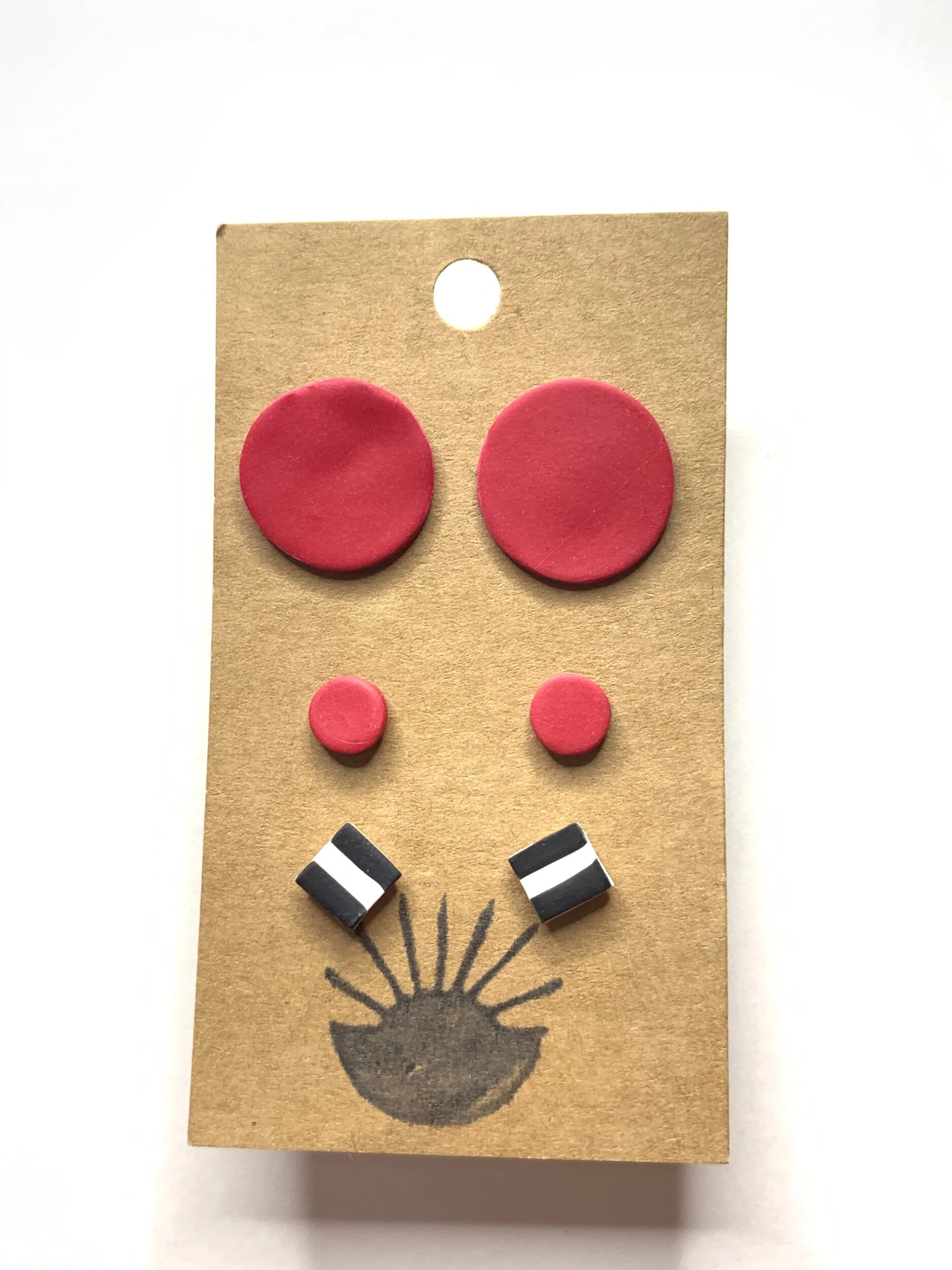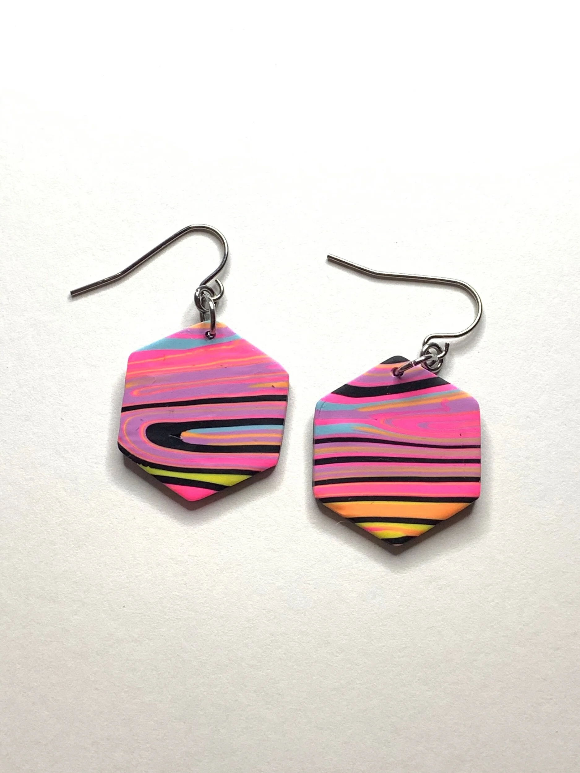 Hand made with polymer clay and stainless steel posts.
