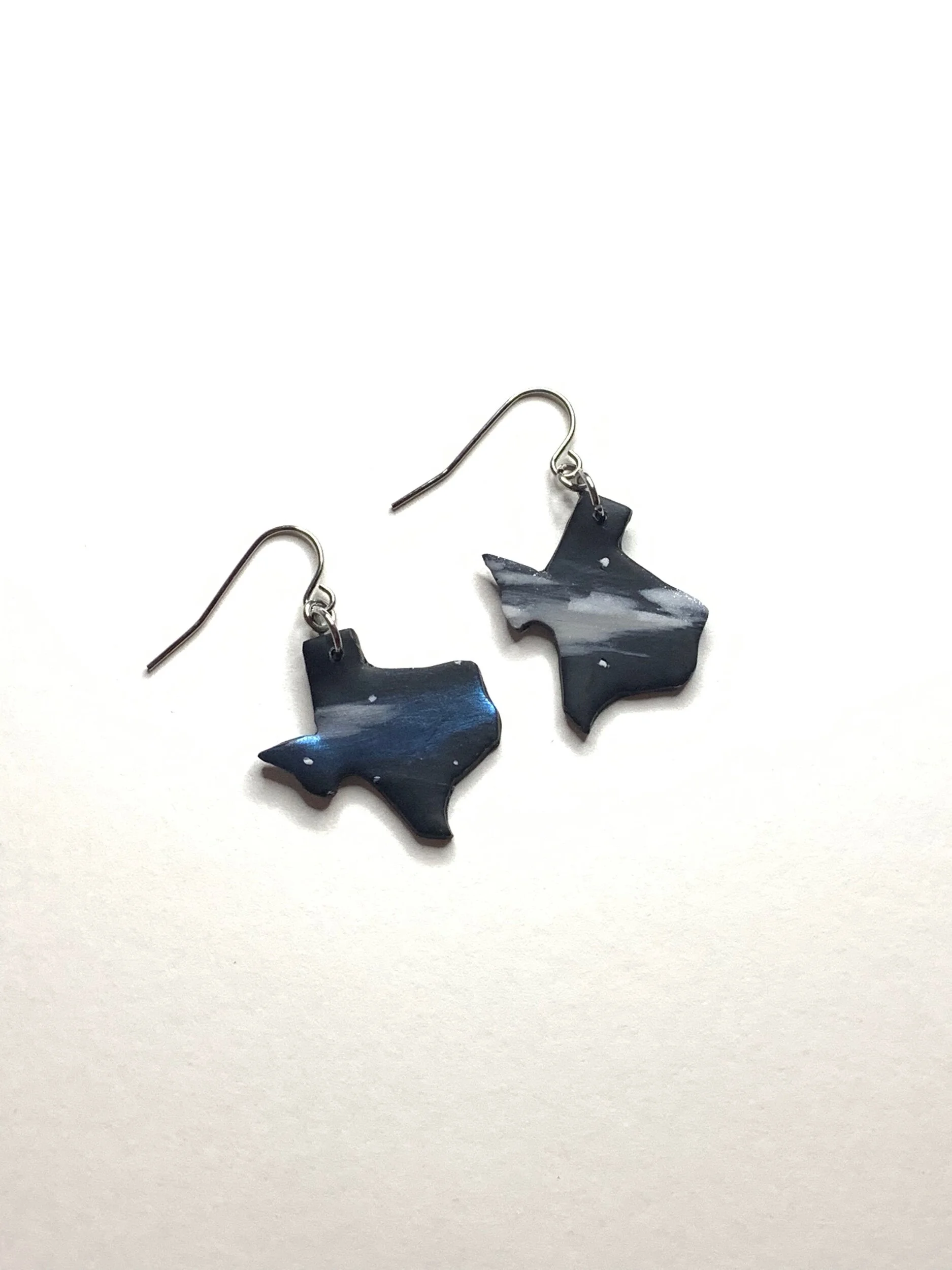Earrings › RWB Texas Dangles Image 1 of 1 RWB Texas Dangles $16.00 Hand made with polymer clay and stainless steel fish hooks Add To Cart Added! Hand made with polymer clay and stainless steel fish hooks You Might Also Like Galaxy Texas Dangles $16.00 Texas Studs $15.00